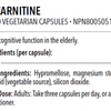 Medicinal Ingredients: Acetyl L-Carnitine 800 mg Non-medicinal Ingredients: Hypromellose, magnesium stearate (vegetable source), stearic acid (vegetable source), silicon dioxide.
