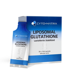 Glutathione is a tripeptide molecule synthesized in the body from three amino acids: cysteine, glycine, and glutamate. Glutathione is considered one of the body's most powerful antioxidants. It is involved in several enzyme systems necessary for detoxification, neutralizing free radicals, and maintaining blood-brain barrier function. A number of health problems are associated with low intracellular glutathione levels, including neurological deficits, cognitive problems, Parkinson's disease, autism, and respiratory problems. Simply put, glutathione deficiency is a marker of mitochondrial dysfunction and oxidative stress. CytoMatrix Liposomal Glutathione utilizes Cyto-Sorb, a unique, patented technology, to create a stable, multi-layered liposome with additional micellar glutathione delivery.