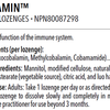 Medicinal Ingredients (per lozenge): Vitamin B12 (hydroxocobalamin, methylcobalamin, adenosylcobalamin) 3000 mcg Nonmedicinal Ingredients: Mannitol, modified cellulose, natural orange flavor and color, magnesium stearate (vegetable source), citric acid, and luo han guo (naturally occurring sugar).