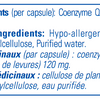Ingrédients médicinaux (par capsule) : Coenzyme Q10 (fermentation de levure) 120 mg Ingrédients non médicinaux : Cellulose de plante hypo-allergénique, hydroxy propyl méthylcellulose, eau purifiée.
