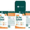 HMF Fit for School (format de conservation) est une combinaison de souches humaines de probiotiques issus de la recherche, de vitamine C et de vitamine D3 qui soutient la santé gastro-intestinale et contribue à réduire l’incidence des symptômes d’infections des voies respiratoires supérieures (IVRS) chez les enfants. Des recherches portant sur l’utilisation des souches de probiotiques que contient la formule HMF Fit for School (Lactobacillus acidophilus CUL-21 et CUL-60, Bifidobacterium bifidum CUL-20 et Bifidobacterum animalis subsp. lactis CUL-34), en plus de 50 mg de vitamine C ont permis de constater une importante diminution de l’incidence des IVRS, du nombre de jours avec des symptômes d’IVRS, de l’incidence des maux de gorge et de la toux, de la durée des maux de gorge et de l’absentéisme scolaire, et une diminution de l’usage d’antibiotiques au sein du groupe ayant reçu des probiotiques comparativement au groupe placebo. HMFMD Fit for School (longue conservation) contient aussi 25 μg (1 000 U.I.) de vitamine D3 par comprimé à croquer. La vitamine D est bien connue pour ses effets bénéfiques sur la santé des os et elle joue un rôle crucial dans le développement d’os en santé chez les enfants et les adolescents. Elle améliore aussi la santé immunitaire en soutenant le système immunitaire par divers mécanismes. Ce produit pratique et de longue conservation se présente sous la forme de comprimés à croquer et son efficacité est garantie jusqu’à l’expiration. De plus, il a une délicieuse saveur naturelle de fraise et de vanille.