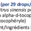 Ingrédients médicinaux / Goutte:Vitamine E (liquide) (de l'acétate d'alpha-d-tocophéryl) - 2,4 UI**Unités internationales Ingrédients non médicinaux : D-Limonène (de l'écorce de Citrus sinensis)