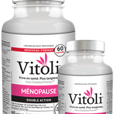 Il est recommandé de prendre VITOLIMD MÉNOPAUSE lorsque les symptômes de la ménopause se font sentir : bouffées de chaleur et sueurs nocturnes. VITOLIMD MÉNOPAUSE est composé de trois ingrédients actifs complémentaires : l’actée à grappes noires, les flavonoïdes de soya et le Complexe ProvitolMD. Étant donné que la sensibilité des femmes à ces extraits de plantes varie de façon importante, la formule VITOLIMD fut développée afin de permettre une dose de base par capsule et une dose complète avec deux capsules. Il est ainsi recommandé de débuter avec deux capsules pour une période de deux semaines et, par la suite, de réduire à une capsule afin d’observer si l’effet d’une capsule est suffisant.