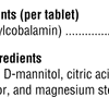Ingrédients médicinaux (par comprimé): Vitamine B12 (méthylcobalamine) ...... 5000 mcg Ingrédients non médicinaux : Xylitol, acide stéarique, D-mannitol, acide citrique, dioxyde de silicium, arôme naturel d'orange et magnésiumstéarate.