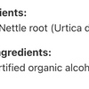 Ingrédients médicinaux:Racine d’ortie certifiée biologique (Urtica dioica) Ingrédients non-médicinaux:Eau distillée, alcool certifié biologique