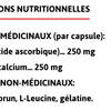 Ingrédients médicinaux (par capsule): Vitamine C (Acide ascorbique)... 250 mgAscorbate de calcium... 250 mg Ingrédients non médicinaux : Poudre de riz brun, L-Leucine, gélatine.