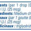 Ingrédients médicinaux (par goutte [environ 0,03 ml]) : Vitamine D3 (cholécalciférol) 25 mcg (1000 UI). Ingrédients non médicinaux : Triglycérides à chaîne moyenne.