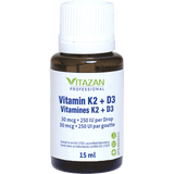 Chaque goutte contient: Vitamine K2 (menaquinone-7) 30 mcg Vitamine D3 (cholecalciferol)(250UI) 6.25 mcg Ingrédient non médicinal : Triglycérides à chaîne moyenne (TCM) Ne contient pas : Gluten, soja, blé, maïs, oeufs, produits laitiers, levure, agrumes, agents de conservation, arôme ou colorant artificiels, amidon, ou sucre.