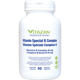 Chaque capsule végétale contient : Vitamine B1 (chlorhydrate de thiamine) 50 mg Vitamine B2 (riboflavine) 50 mg Vitamine B2 (riboflavine-5′-phosphate sodique) 5 mg Vitamine B3 (sans rougeoiement, de 50 mg d’hexanicotinate d’inositol) 45.5 mg Vitamine B5 (d-pantothénate de calcium) 50 mg Vitamine B6 (pyridoxal-5′-phosphate) 5 mg Vitamine B6 (chlorhydrate de pyridoxine) 50 mg Folate (de l‑5‑méthyltétrahydrofolate de calcium) 1 mg Biotine 75 mcg Vitamine B12 (méthylcobalamine) 150 mcg Choline (bitartrate de choline) 50 mg Inositol (myo-inositol) 50 mg Acide para-aminobenzoïque (PABA) 50 mg Ingrédients non médicinaux : Cellulose microcristalline, stéarate de magnésium végétal, et dioxyde de silicium dans une capsule végétale sans OGM composée de gomme de glucides végétale et d’eau purifiée.